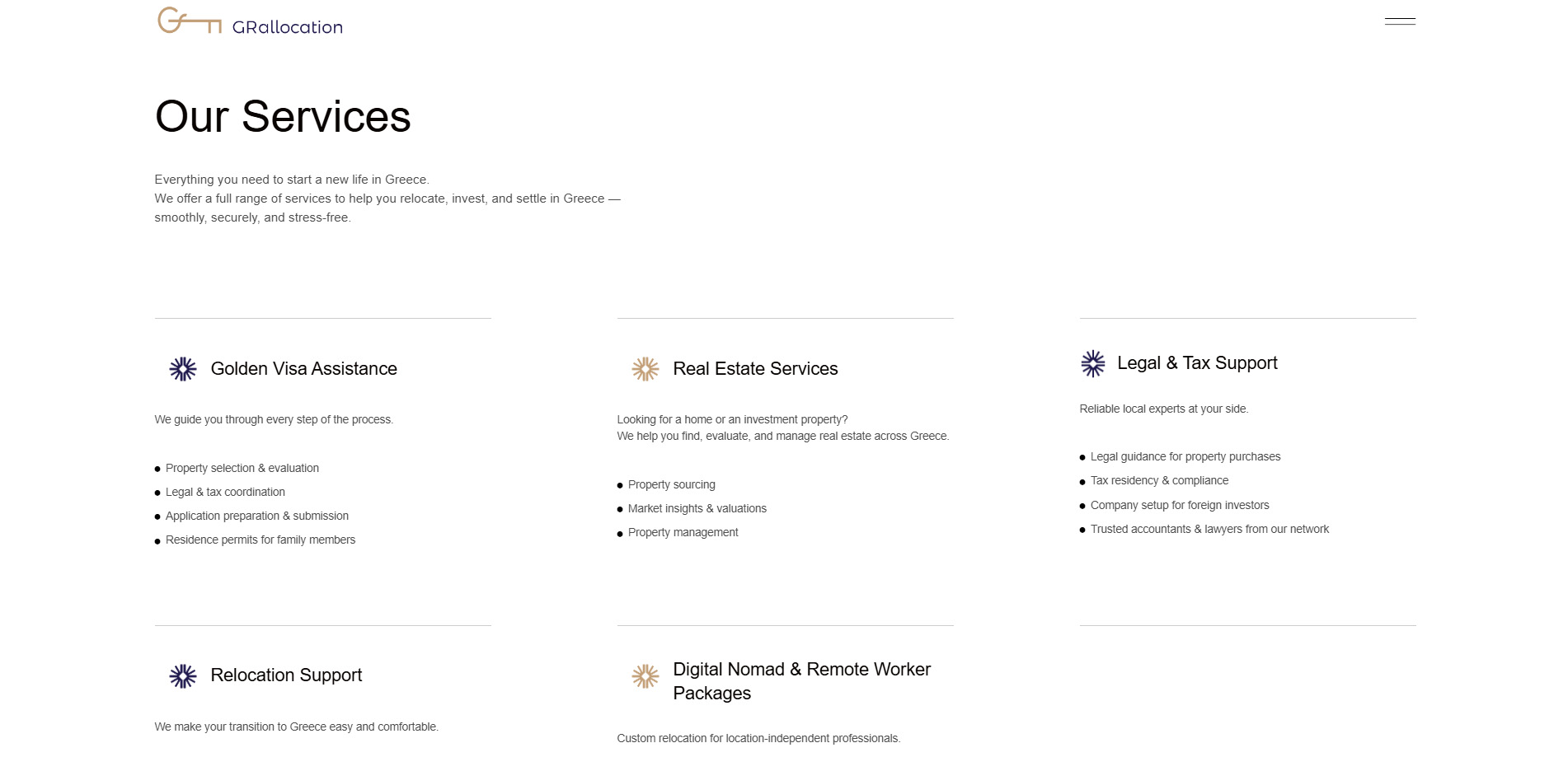Η νέα ιστοσελίδα προβάλλει με σαφήνεια και απλότητα τις υπηρεσίες της Grallocation, όπως την αγοραπωλησία, ενοικίαση και διαχείριση ακινήτων, ενώ ενισχύει την ψηφιακή της παρουσία με δυνατότητες αναζήτησης ακινήτων, online ραντεβού για επιτόπιες επισκέψεις και άμεση επικοινωνία με τους συμβούλους της. Με έμφαση στην αισθητική, την ευχρηστία και την εξαιρετική εμπειρία χρήστη σε όλες τις συσκευές, η ιστοσελίδα καθιστά την Grallocation τον ιδανικό προορισμό για όποιον αναζητά το επόμενο ακίνητό του ή επιθυμεί να επενδύσει στην αγορά ακινήτων με σιγουριά και ασφάλεια.