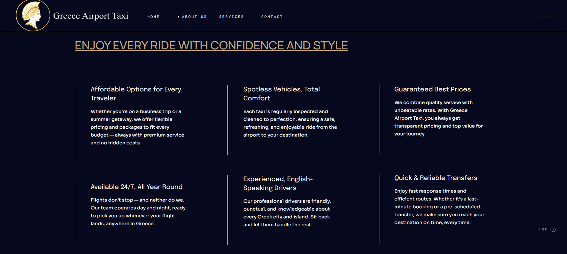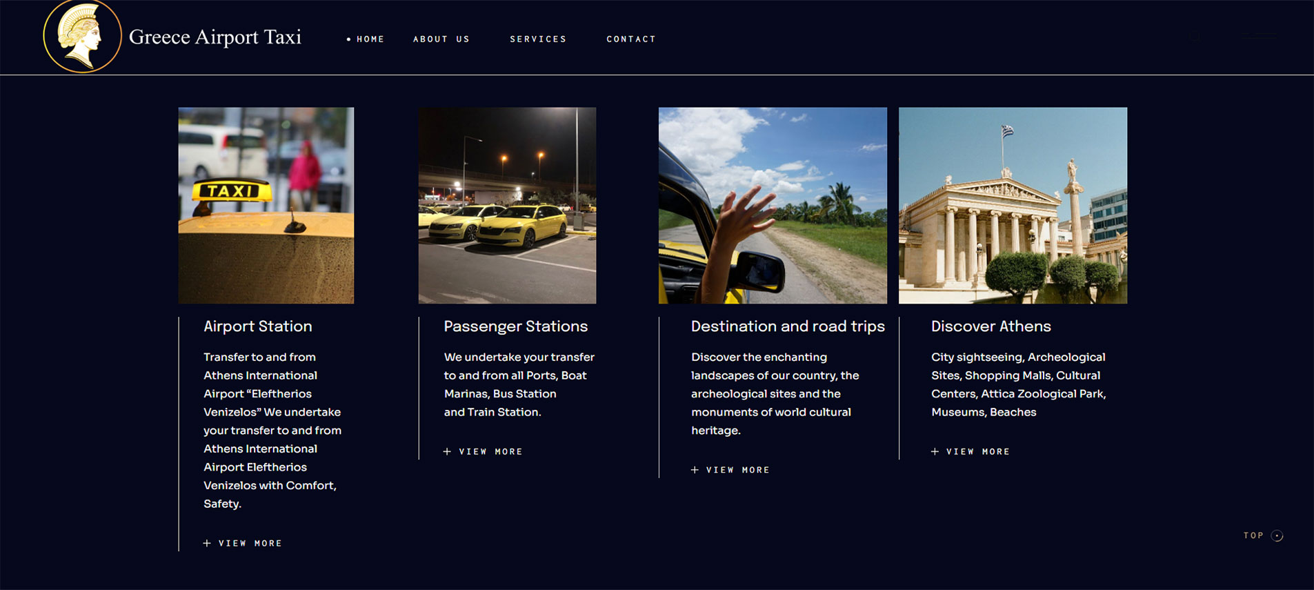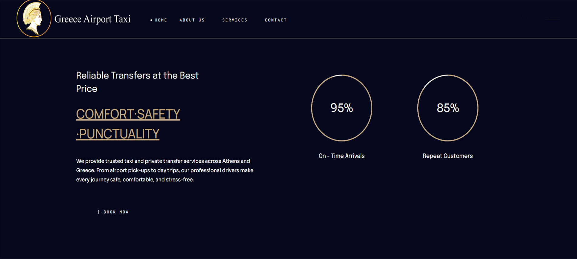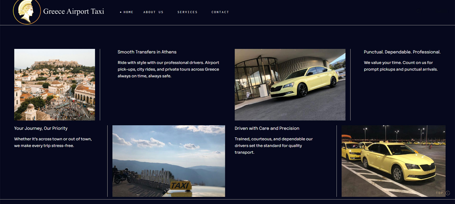 Η Greece Airport Taxi μάς εμπιστεύτηκε τον σχεδιασμό της νέας της ιστοσελίδας, με σκοπό να αποδώσουμε την αξιοπιστία, την άνεση και την αίσθηση ασφάλειας που χαρακτηρίζουν τις υπηρεσίες μεταφοράς της. Δημιουργήσαμε ένα σύγχρονο και λειτουργικό ψηφιακό περιβάλλον, σχεδιασμένο ώστε να εξυπηρετεί τον ταξιδιώτη άμεσα, ξεκάθαρα και χωρίς περιττή πολυπλοκότητα.