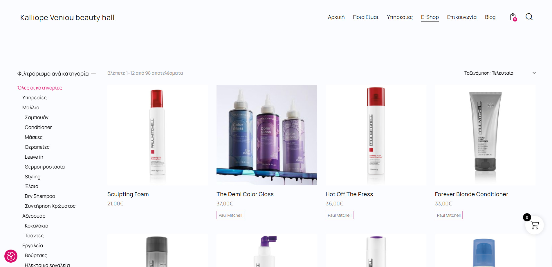 H Kalliope Veniou Beauty Hall μας ανέθεσε τον σχεδιασμό της νέας της ιστοσελίδας, με στόχο να αναδείξουμε την εξαιρετική τέχνη της στο χώρο της κομμωτικής και των υπηρεσιών ομορφιάς. Δημιουργήσαμε μία σύγχρονη και κομψή πλατφόρμα που αποπνέει την εξειδίκευση και το πάθος της Καλιοπής για την τέχνη του μαλλιού, προσφέροντας στους επισκέπτες μία ευχάριστη και εύκολη εμπειρία πλοήγησης.