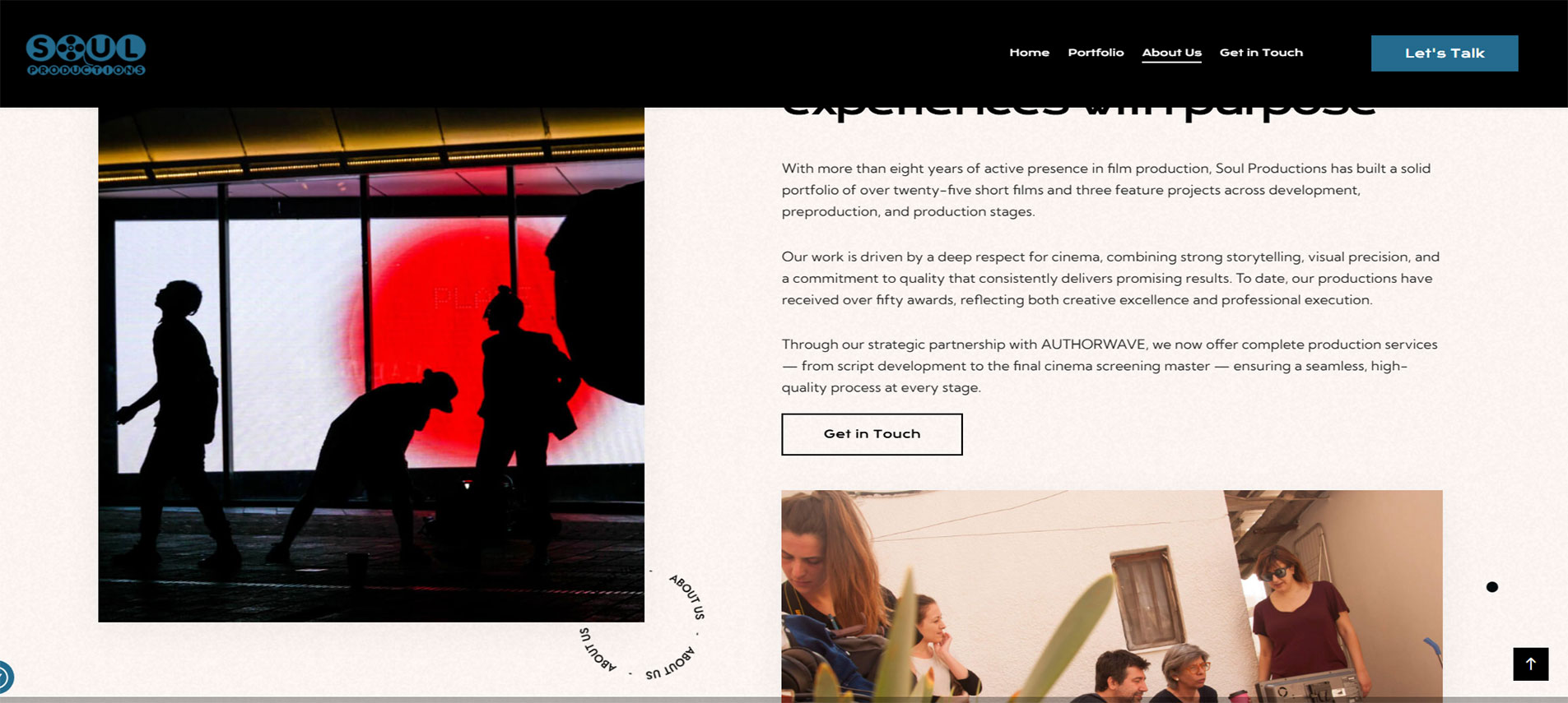 Το Soul Productions μάς εμπιστεύτηκε τον σχεδιασμό της νέας του ιστοσελίδας με στόχο να αναδείξει ψηφιακά την ειδικότητα και την ποιότητα της εταιρείας παραγωγής οπτικοακουστικών έργων. Η πλατφόρμα έχει σχεδιαστεί ώστε να μεταφέρει με αισθητική και ξεκάθαρο τρόπο το δημιουργικό όραμα, το portfolio παραγωγών και τις υπηρεσίες που προσφέρει στον χώρο του κινηματογράφου, της τηλεόρασης και των οπτικοακουστικών έργων.
